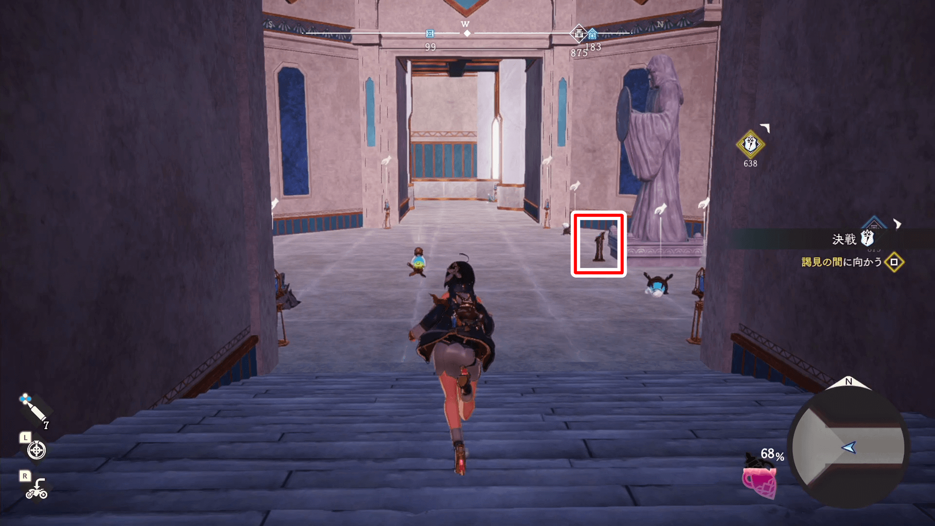 評議院の宝箱の1つは、像の後ろに隠されている。評議院では、広域スキャンしても宝箱が表示されないため、あと1つ宝箱が集まらないときは、像の後ろを調べよう。