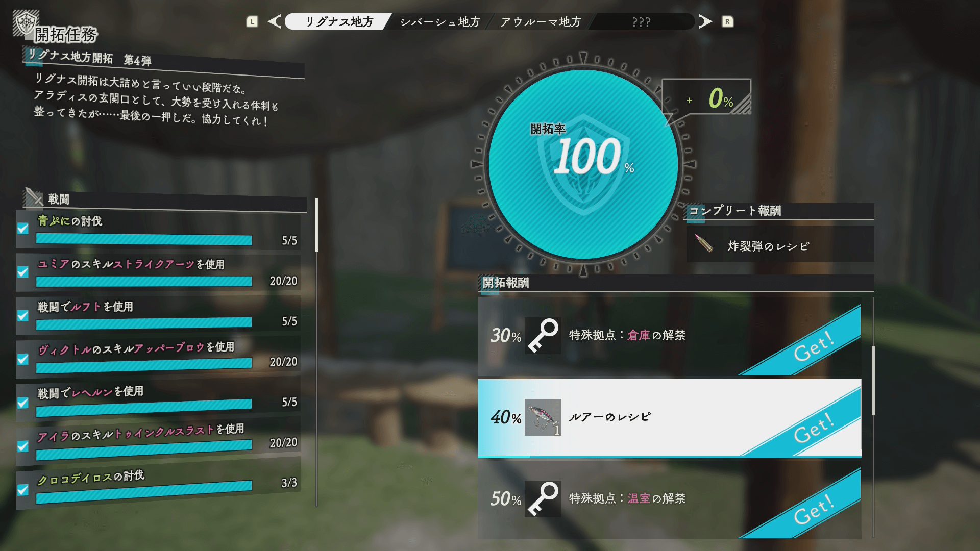 開拓クエストは、各地方ごとに開拓率を進めると発生するクエストだ。開拓クエストをクリアするといままでに移動できなかった場所の解放や報酬がもらえるので、時間があれば進めておくと良い。