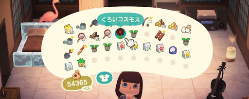 「くろいコスモス」は、タヌキ商店で売却できる。お金に困っている時のベル稼ぎにもなるため、「くろいコスモス」が余っている場合はタヌキ商店で売ろう。