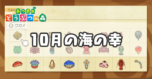 あつ森(あつまれどうぶつの森Switch)における、10月の海の幸について紹介。10月から出現する海の幸や10月までしか捕れない海の幸、高値で売れる海の幸も掲載しているので、10月の海の幸について知りたい人は参考にどうぞ!
