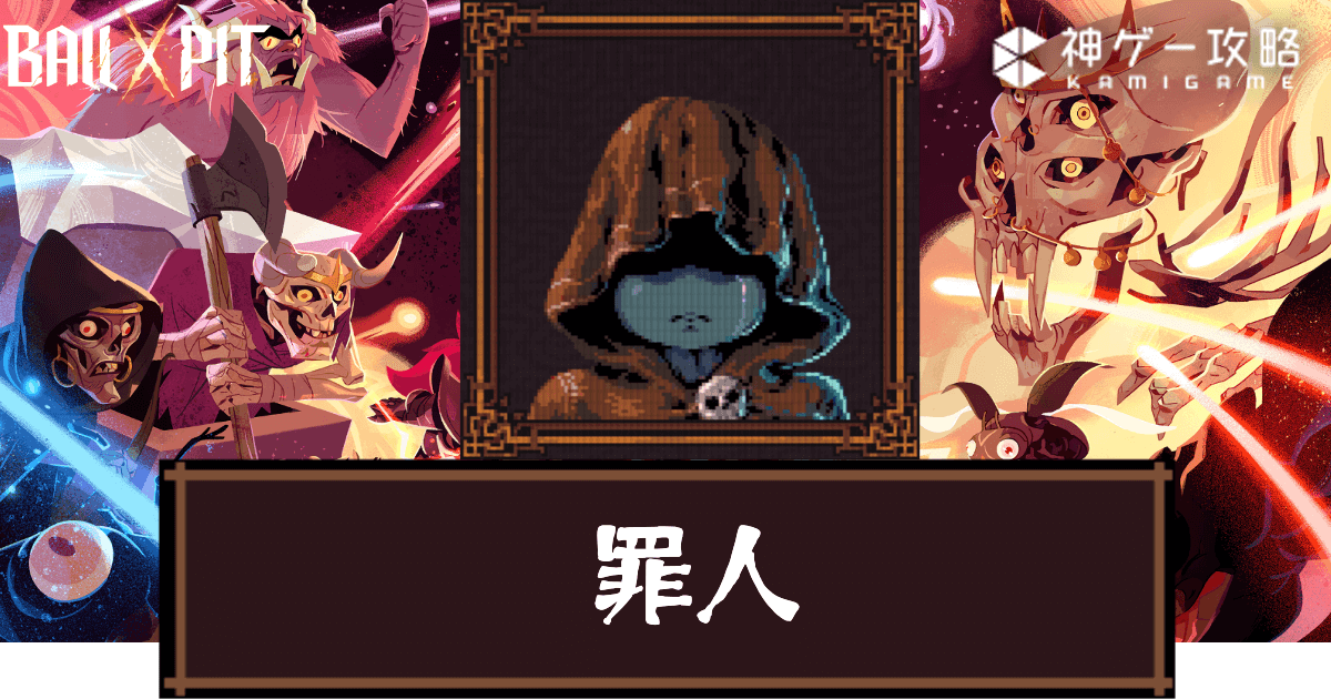 Ball x Pit(ボールピット)のキャラクター「罪人」の性能や立ち回りについて掲載中!特徴や初期ボールのほか、おすすめビルドについても記載しているので、罪人について知りたい時の参考にどうぞ。