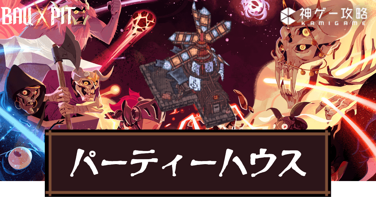 Ball x Pit(ボールピット)の建造物「パーティーハウス」について掲載中!パーティーハウスの拠点効果や建設コストのほか、設計図の入手場所ついても記載しているので、パーティーハウスについて知りたい時の参考にどうぞ。