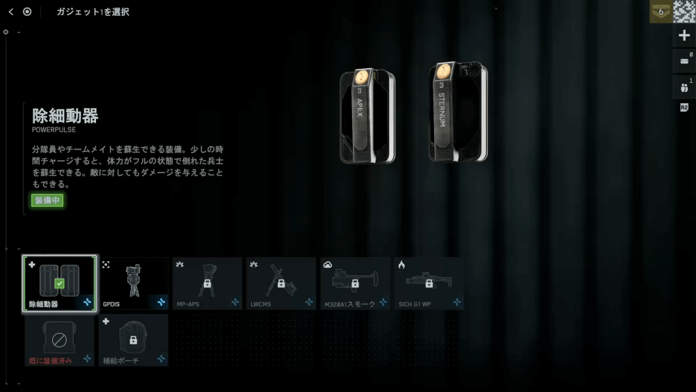 チームデスマッチなど、蘇生の重要性が低いルールでは除細動器を別のガジェットに変更しよう。迎撃システムや補給ポーチなど、継戦能力を高めるガジェットを持ち込むと良い。