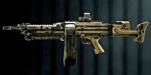 M123Kは、レートが高くLMGの中ではトップクラスのTTKを誇る。レートが高い分反動が強いため、アタッチメントで反動を制御できれば、バイポッドを立てなくても全距離で戦える汎用的なLMGとして運用可能だ。