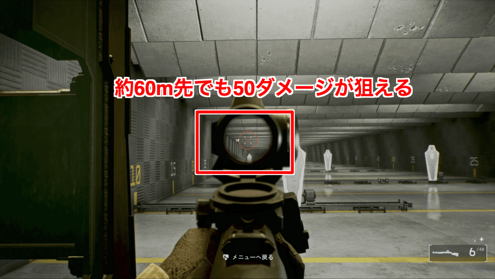 M87A1は10m圏内であれば1射で敵を確殺できる点が非常に強力なショットガンだ。他のショットガンと比べると1発の威力が高く、代わりに連射速度で劣る。頭部を狙わずとも即死が狙えるため、1発目で敵を仕留められるなら最強の射撃武器と言える。