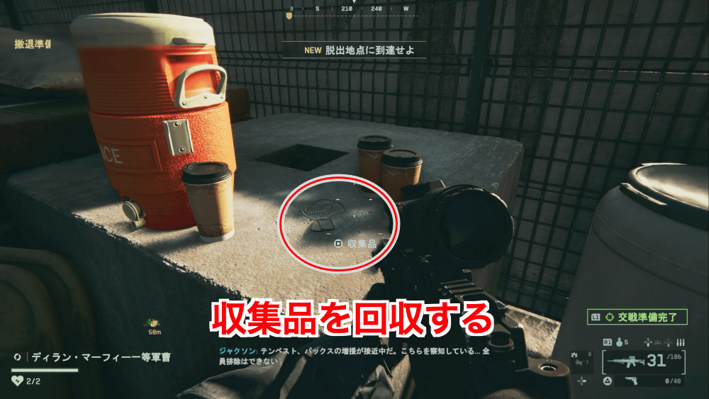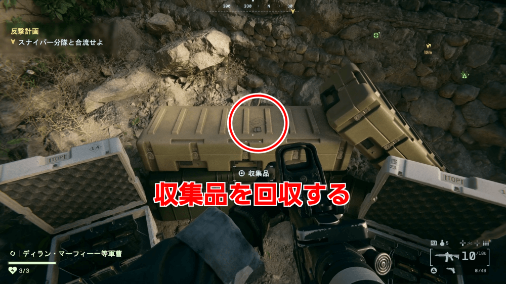 | 6 | 車から降りてスナイパー分隊付近の収集品を回収する |