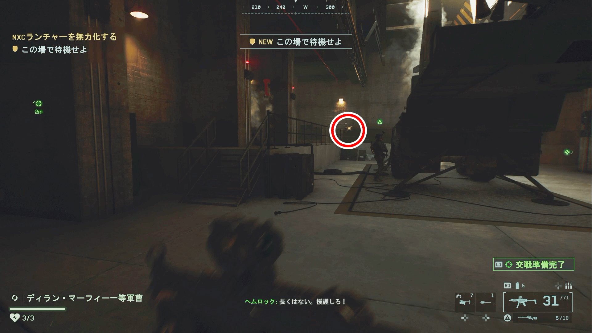 MCXランチャーBravoに到着後、バンカー内部へ侵入する。バンカー内を進む前に、入口すぐ近くの荷物の上にある収集品を忘れずに回収しよう。収集品は、トロフィーやチャレンジの達成条件に設定されているため、積極的に集めるのがおすすめだ。