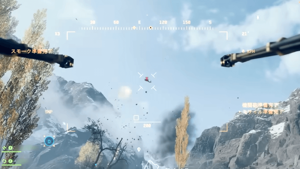 自走式対空砲は対空に特化した乗り物なため、ヘリや航空機を優先して攻撃すると良い。武器は、メインの機関砲、サブのロックオン式対空ミサイルがあり、どちらも対空向けだ。なお、戦車などの装甲に対する攻撃力が低いため、戦車との戦闘は避けよう。