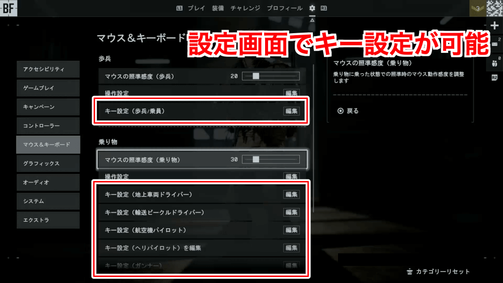 射撃場では自由に動き回れるので、スライディングやリーン撃ちなどの練習も可能。ゲームプレイ設定やキー設定の動作を確認しつつ、自分好みに変更しよう。