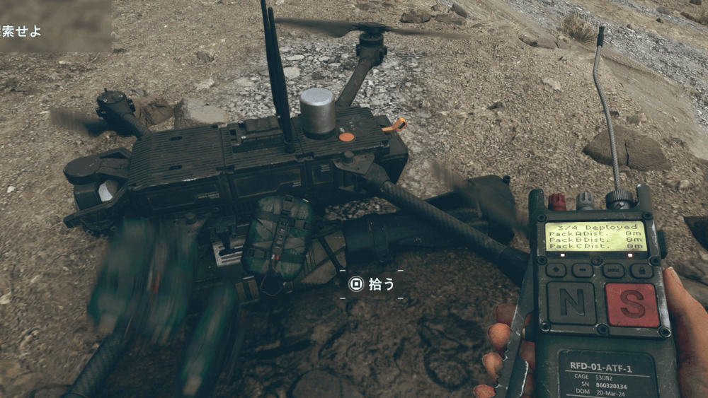 ドローンを出して、解体爆薬をドローンに付けよう。解体爆薬は、3つ全てドローンに付けるとより高いダメージを与えられる。