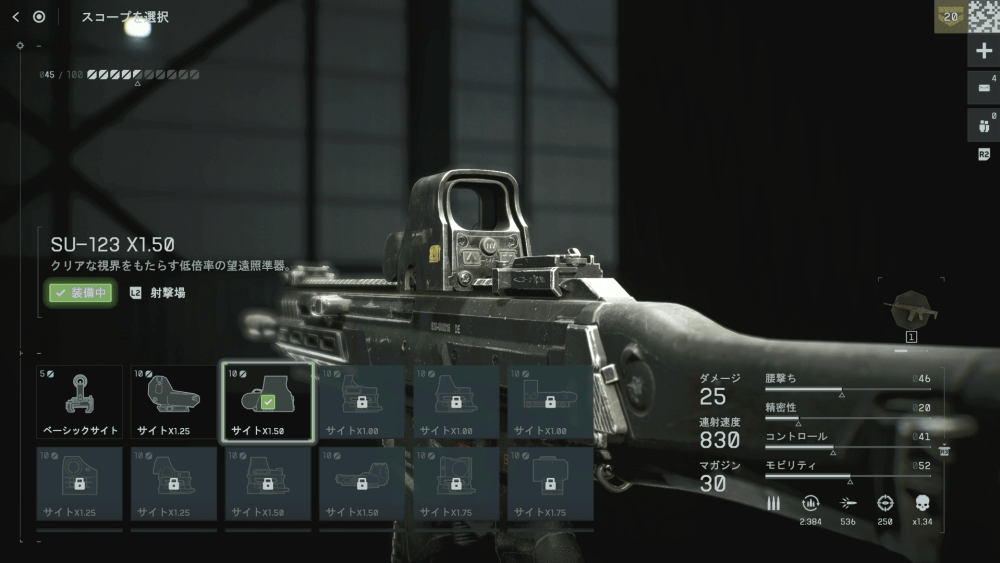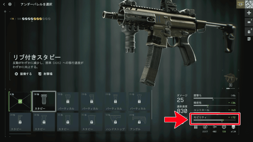 近距離武器は、モビリティを優先して上げよう。モビリティを上げると、武器を構えたときの移動速度が上がるのに加え、ADS(スコープを覗く動作)の速度も上がる。