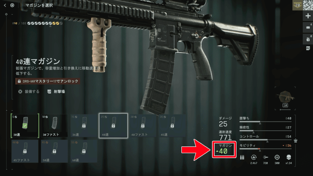 弾数が少ない武器は、マガジンを優先してカスタマイズしよう。弾数が多いほど、リロードせずに戦える時間が増えるので、継戦能力や生存力の向上にも繋がる。