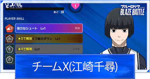 ブルーロック ブレイズバトル(ブレバト)のキャラ「江崎千尋/チームX」について紹介。えざき ちひろの評価や性能、所持スキル、ステータス、選手に関連した他のキャラやサポートカード、プロフィールについても掲載しているので、ブレバトをプレイする際の参考にどうぞ。