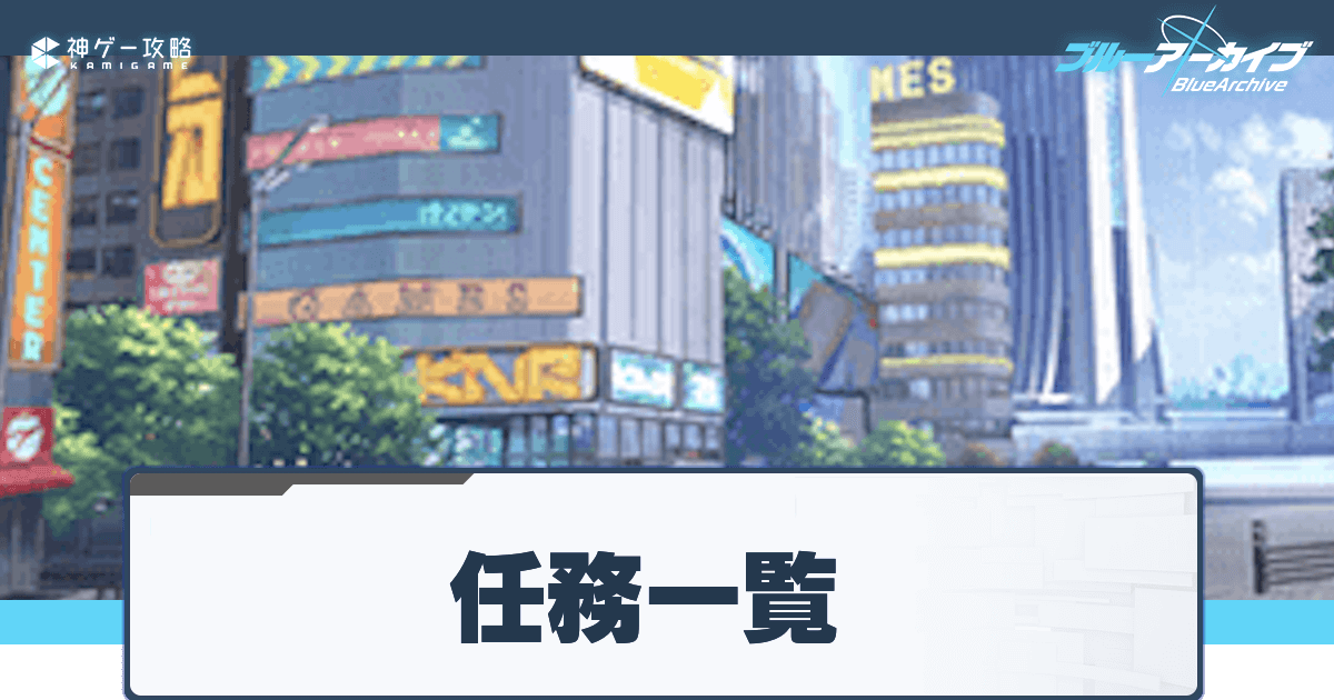 ブルーアーカイブ(ブルアカ)の任務(メインクエスト)の情報を掲載。各任務で入手できる素材の一致欄をはじめ、任務を攻略するメリットなどをまとめて記載しているため、ブルーアーカイブを攻略する際の参考にどうぞ!