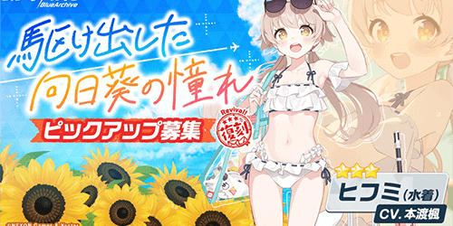 ブルアカ(ブルーアーカイブ)の水着ヒフミPUガチャ(駆け出した向日葵の憧れ)を紹介。PUガチャを引くべきかどうかの解説をはじめ、ガチャシミュや限定キャラ「水着ヒフミ」の評価も掲載しているので、ブルアカの水着ヒフミPUガチャについて知りたい際の参考にどうぞ!