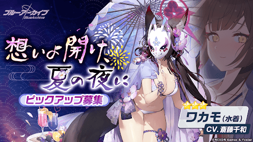 ブルアカ(ブルーアーカイブ)の水着ワカモPUガチャ(想いよ開け、夏の夜に)を紹介。PUガチャを引くべきかどうかの解説をはじめ、ガチャシミュや新キャラ「水着ワカモ」の評価も掲載しているので、ブルアカの水着ワカモPUガチャについて知りたい際の参考にどうぞ!