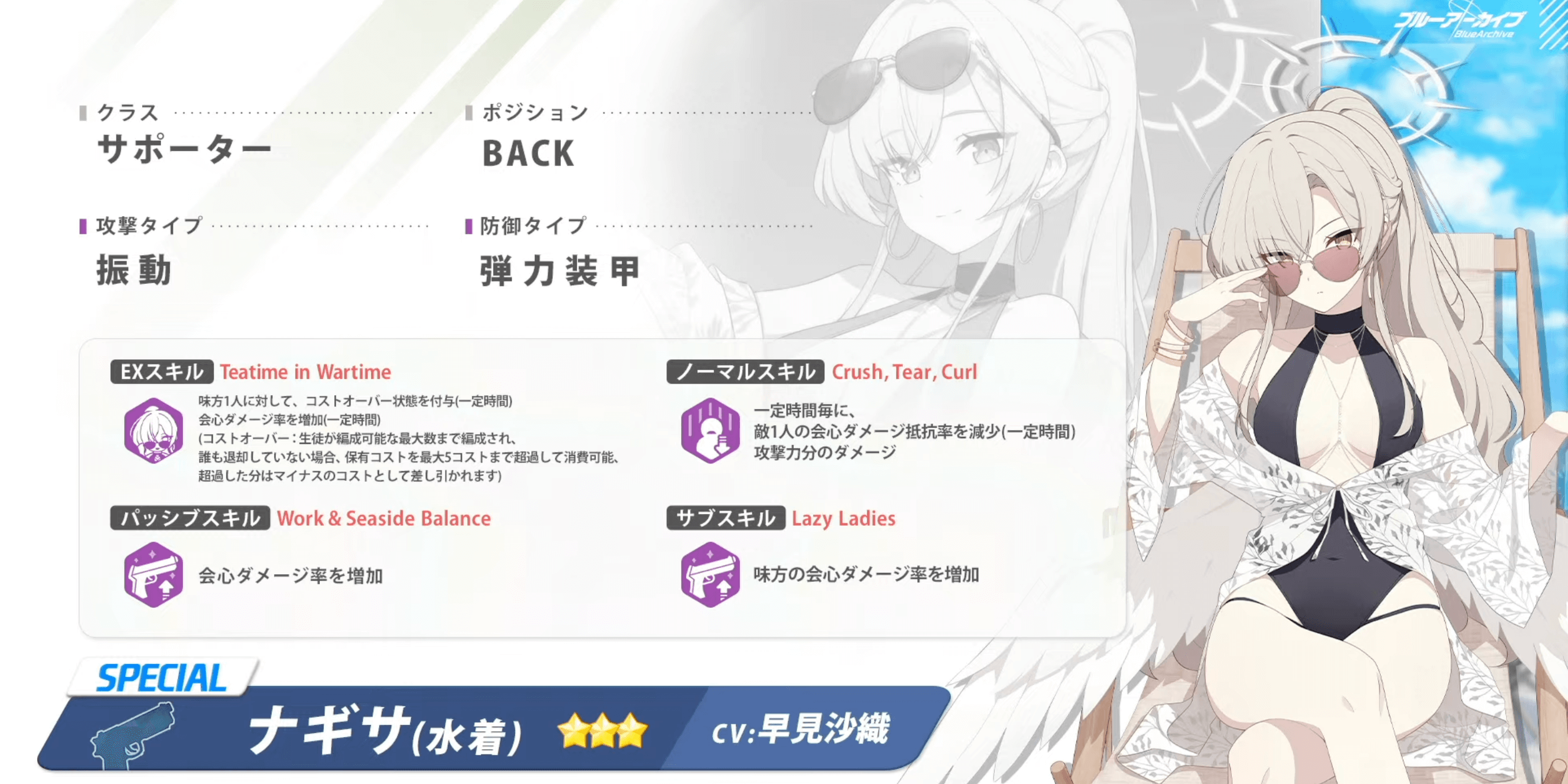 水着ナギサは汎用性の高い会心ダメバフと、唯一無二のコストオーバーによるサポート性能が高いため、必ず確保しよう。コストオーバーはバフ対象のEXスキルを最大5コスト分前借りできる効果で、本来コスト不足で使えない高コストスキルを一時的に低コストで使用可能になる。