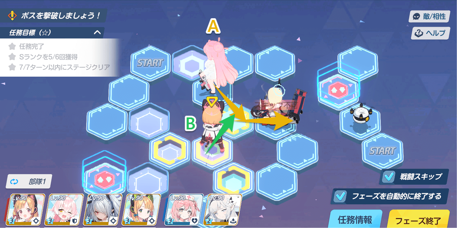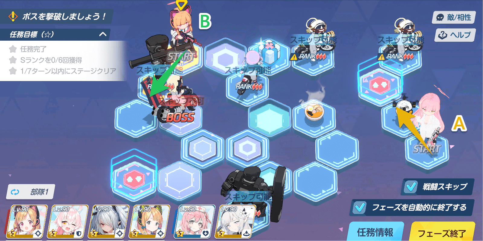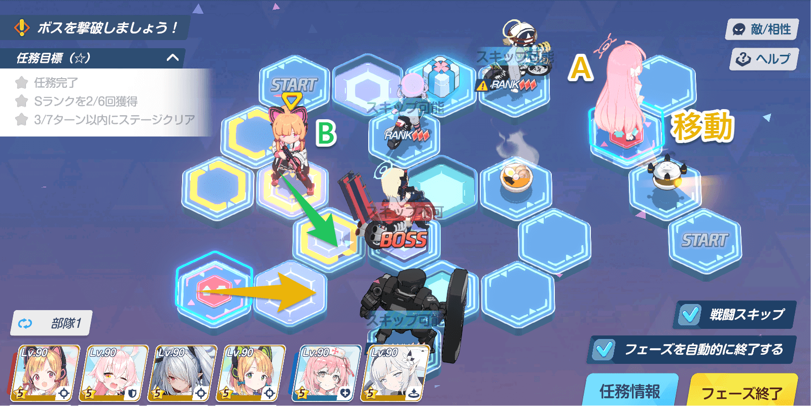 | 任務目標 | ・任務完了 ・Sランクを6回獲得 ・7ターン以内にステージクリア |