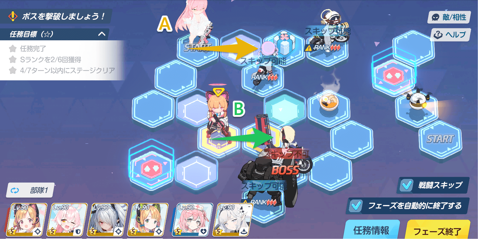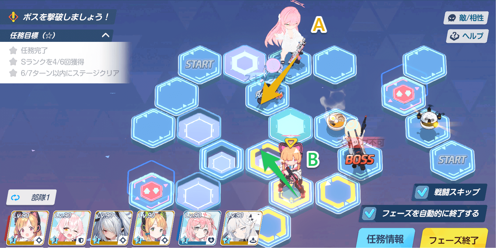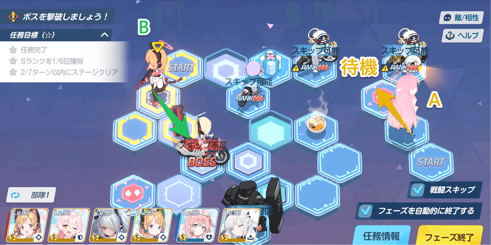 | 任務目標 | ・任務完了 ・Sランクを6回獲得 ・7ターン以内にステージクリア |