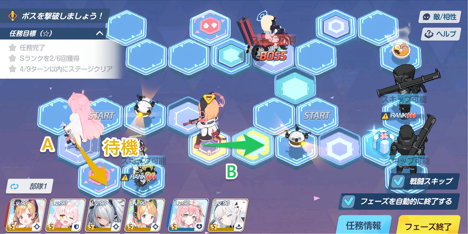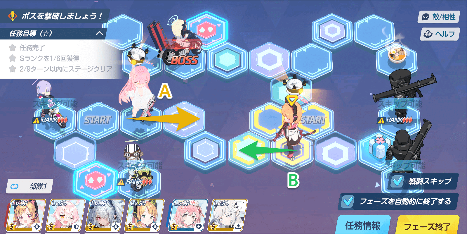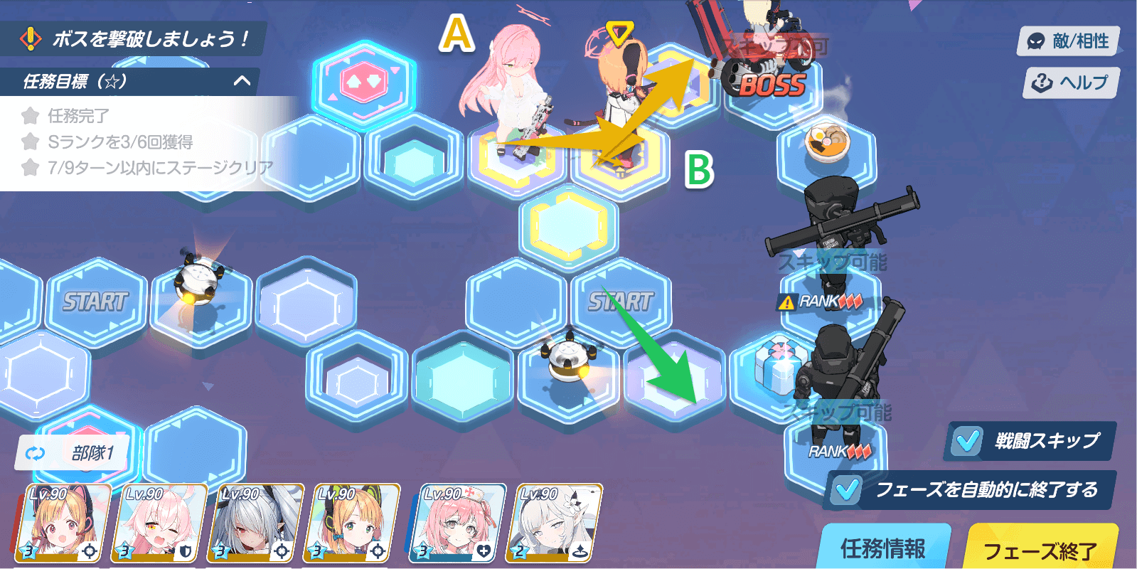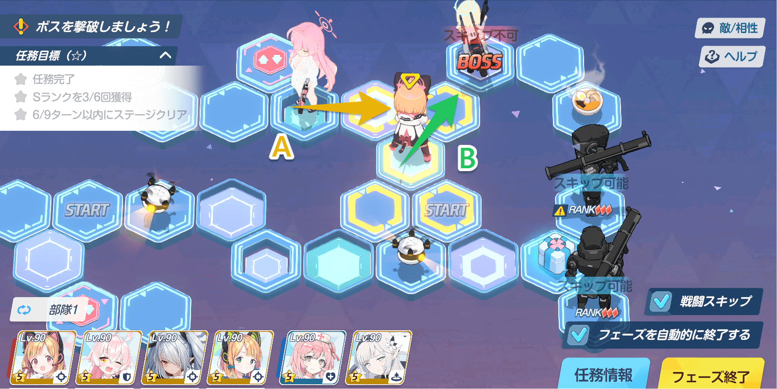 | 任務目標 | ・任務完了 ・Sランクを6回獲得 ・9ターン以内にステージクリア |