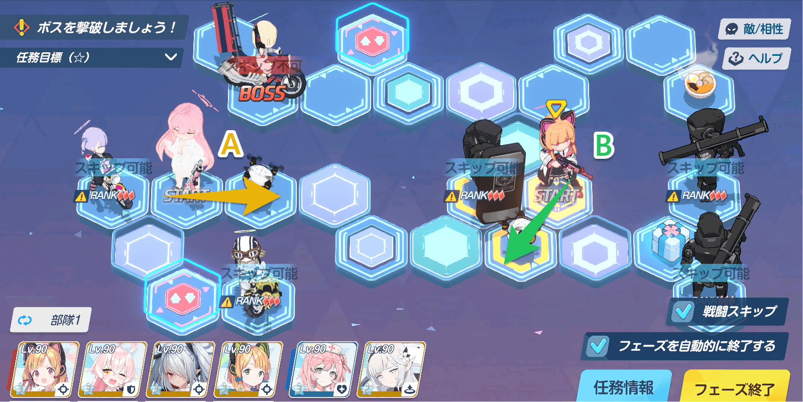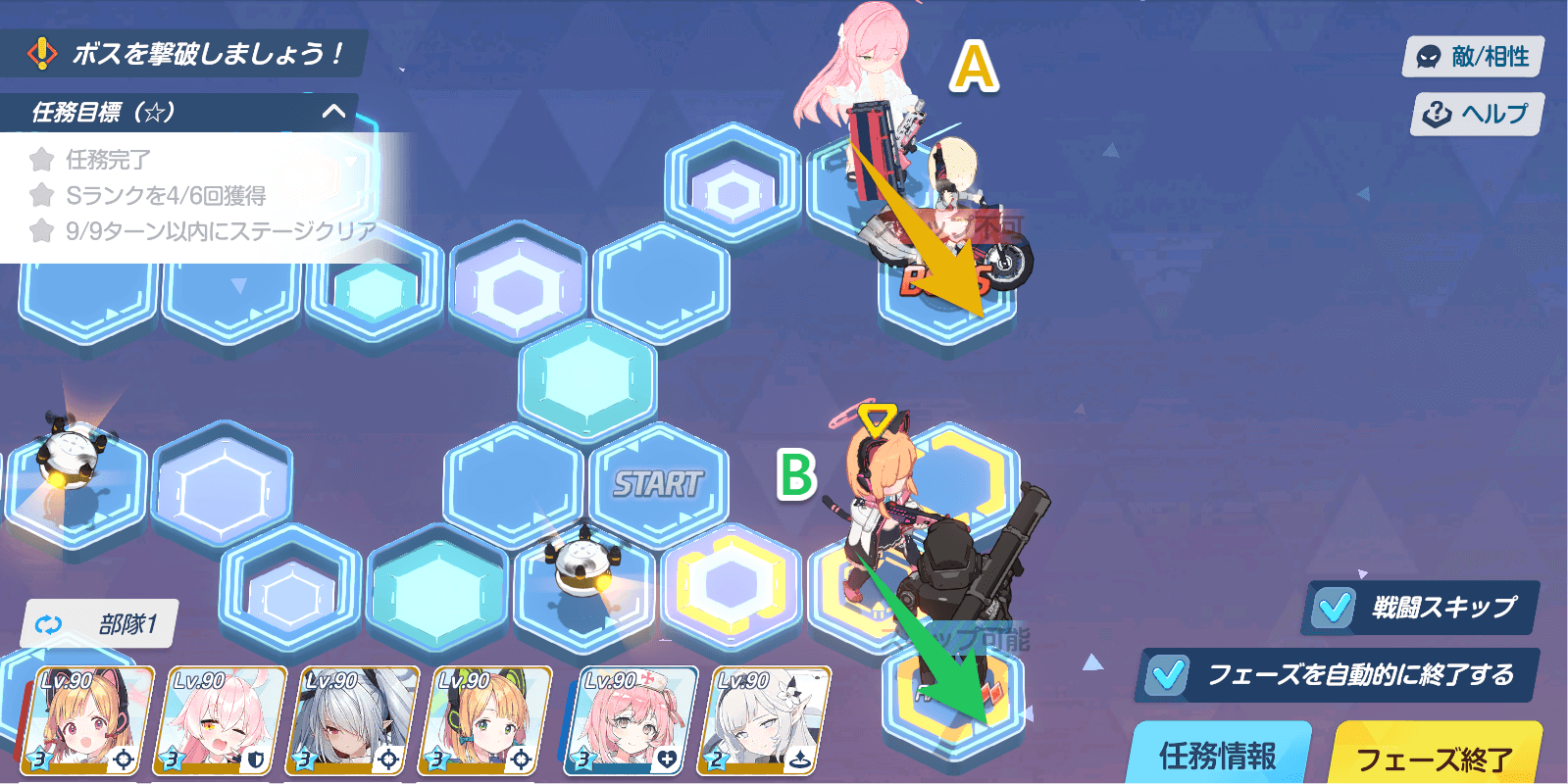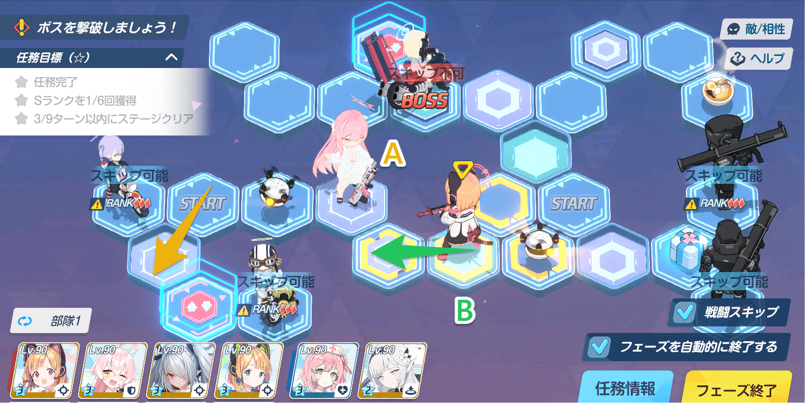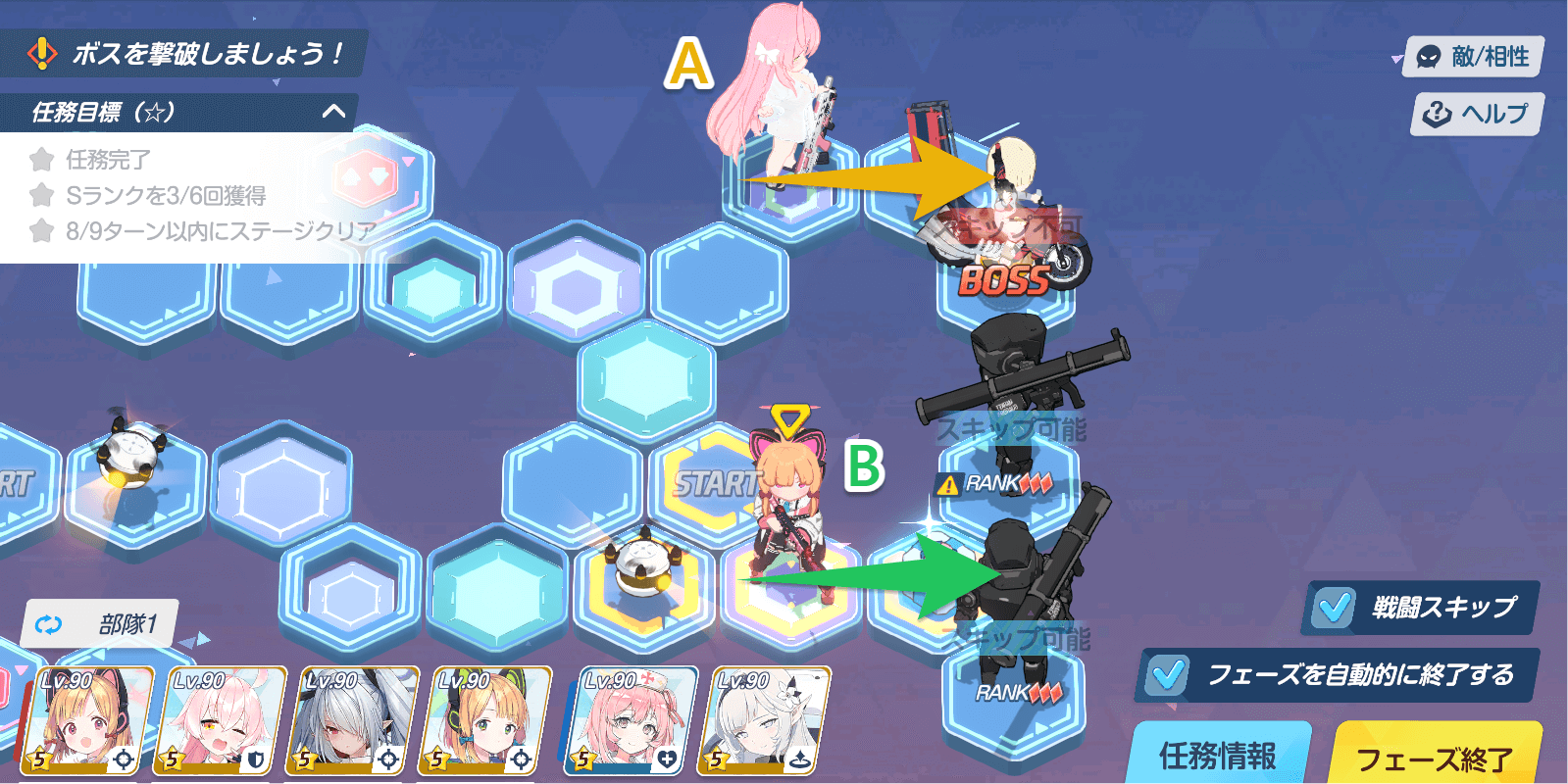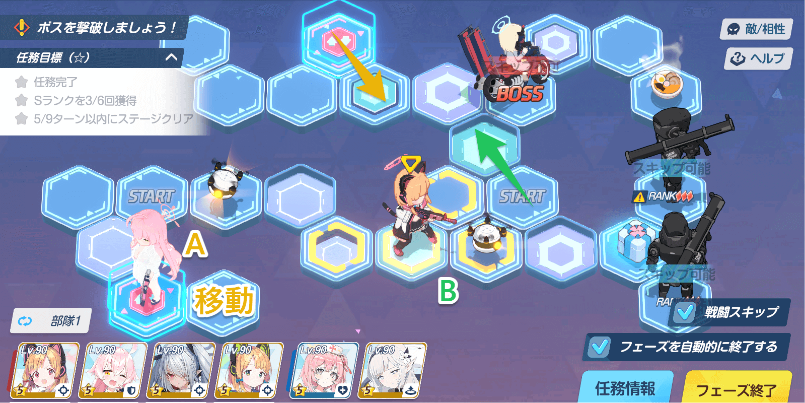 | 任務目標 | ・任務完了 ・Sランクを6回獲得 ・9ターン以内にステージクリア |