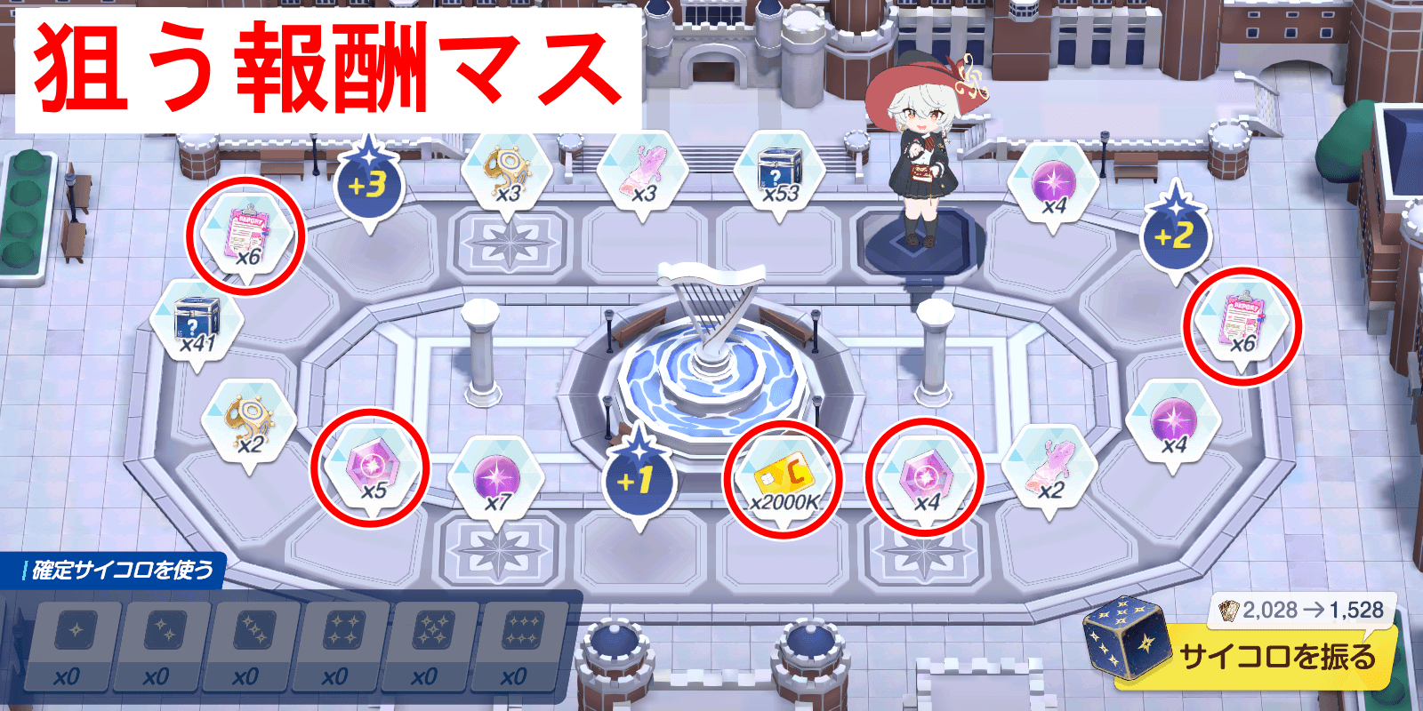 確定サイコロを使う場合は、最上級レポートや200万クレジット、入手手段が限られている神名のカケラに使うのがおすすめ。最上級強化珠はクレジット換算した際にレポートよりも安く、所謂ハズレマスに該当するため、強化珠マスに確定サイコロは使わないようにしよう。