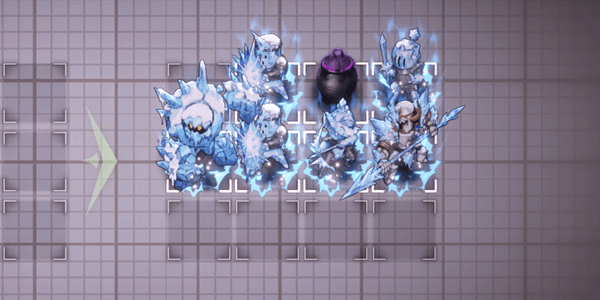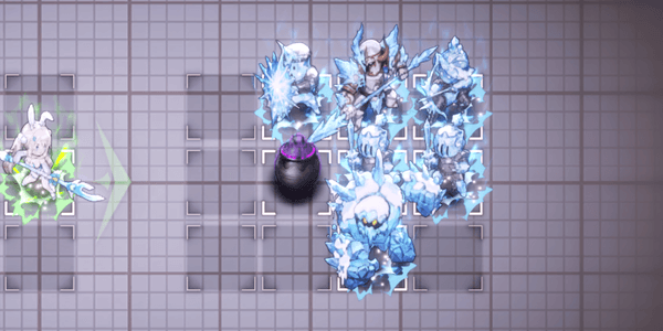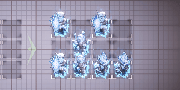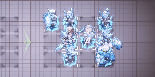 アイスゴーレム戦では、ダリアンで右列を攻撃するのがおすすめだ。アイスゴーレムへスキルを当てれば、左奥の兵も攻撃範囲に収められる。攻撃範囲に入っている敵は凍傷のダメージで倒しきれるため、残る敵をティルやジェニスで倒そう。