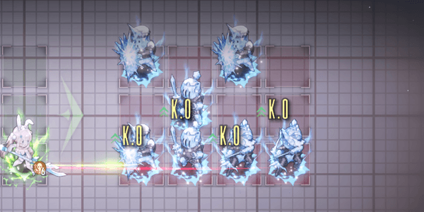 メルトダウン・バニーズのストーリー進行時は、臨時キャラ以外を編成できない。バトルに勝つにはキャラの特性を活かした戦術が求められるため、行動順やスキルを使うタイミングはよく考える必要がある。