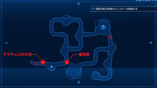 ミッション「洞窟を調査せよ」は、マップ移動のあるミッション。討伐対象の敵が居る場所まで遠くないので迷うことは無いが、マップ上に2つ宝箱が存在するため、目的地に着く前に必ず入手しておこう。