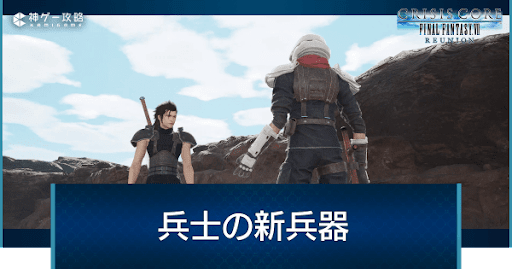 『クライシスコアリメイク』における「兵士の新兵器」について解説。CCFF7の神羅カンパニーの治安維持部隊ミッション「兵士の新兵器」の発生条件と攻略、発生時期や報酬、宝箱場所とクリア後の解放要素も掲載しているため、クライシスコアリユニオンをプレイする際の参考にどうぞ!