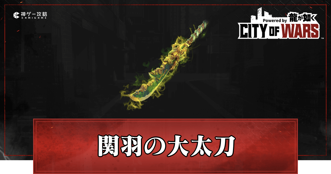 シティオブウォーズ(CW龍)の関羽の大太刀の性能と評価を紹介。関羽の大太刀のスキルの詳細だけでなく相性の良い仲間、宝飾についても掲載しているので、シティオブウォーズの関羽の大太刀について知りたい時の参考にどうぞ。
