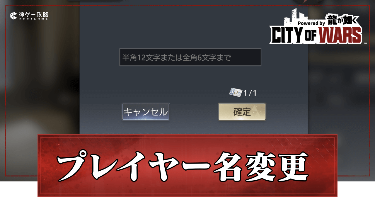 シティオブウォーズのプレイヤー名は、全角6文字の制限がある。半角文字は0.5文字で認識されるため、文字数制限内であれば半角12文字まで使用可能だ。