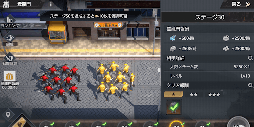 登龍門は、進行度に応じて受け取れる報酬が変化する。ステージが進むほど報酬が豪華になるので、事務所や仲間、用心棒を強化したらクリアできるところまで進めておこう。