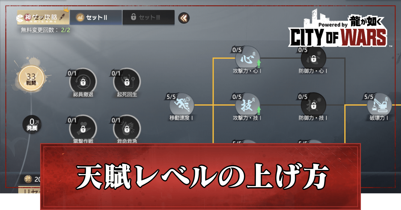 シティオブウォーズ(CW龍)の天賦レベルの上げ方とメリットを紹介。天賦の習得方法や天賦の効果についても掲載しているため、シティオブウォーズで天賦について知りたい時の参考にどうぞ。