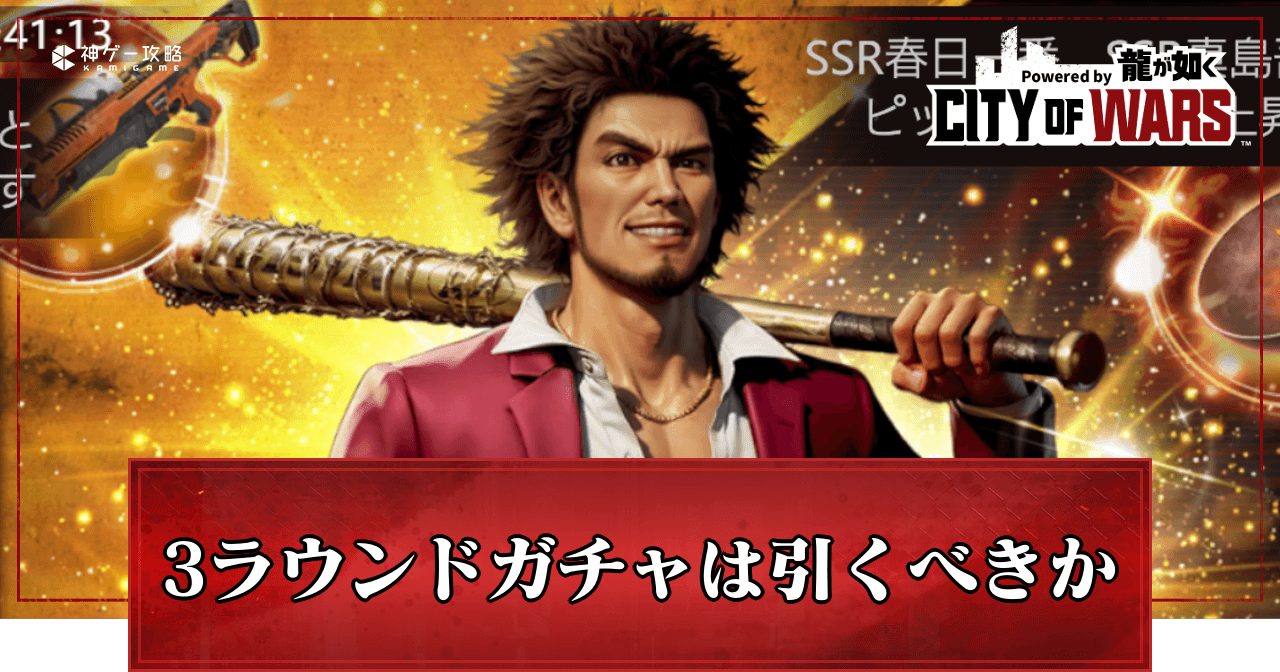 シティオブウォーズ(CW龍)の春日・真島3ラウンドガチャは引くべきかを紹介。ピックアップ対象の仲間や宝飾の性能、3ラウンドガチャの仕様についても掲載しているため、シティオブウォーズで春日・真島3ラウンドガチャを引く時の参考にどうぞ。