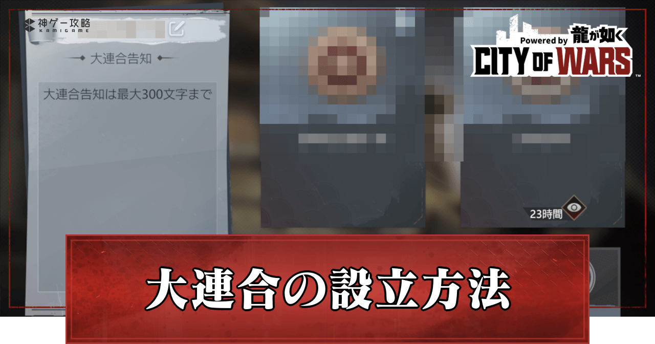 シティオブウォーズ(CW龍)の大連合の設立方法とメリットを紹介。大連合の仕様や協定締結の効果、大連合を脱退する方法についても掲載しているため、シティオブウォーズで大連合を設立する際の参考にどうぞ。