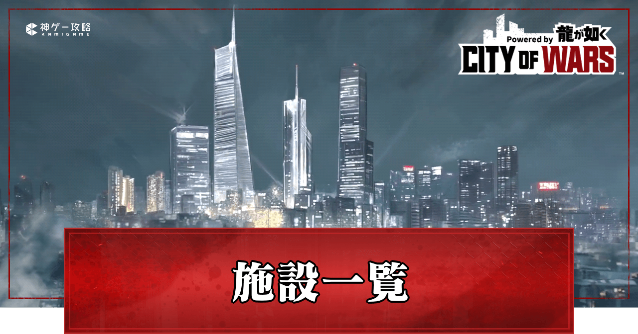 シティオブウォーズ(CW龍)の施設一覧を紹介。強化優先度や解放タイミングについても掲載しているため、シティオブウォーズで施設一覧について知りたい時の参考にどうぞ。