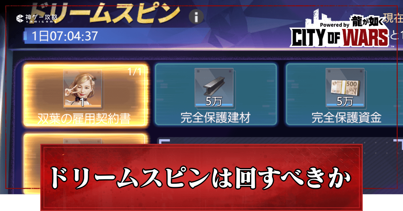 シティオブウォーズ(CW龍)のドリームスピンは回すべきかを紹介。目玉アイテムやポイントについても掲載しているため、シティオブウォーズでドリームスピンについて知りたい時の参考にどうぞ。