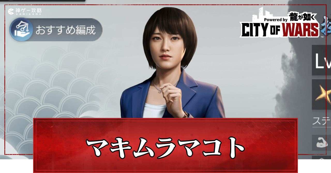 シティオブウォーズ(CW龍)のマキムラマコトの性能と評価を紹介。マキムラマコトのステータスやスキルの詳細だけでなく相性の良い仲間や宝飾、装備についても掲載しているので、シティオブウォーズのマキムラマコトについて知りたい時の参考にどうぞ。