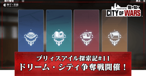 シティオブウォーズ(CW龍)の面白さを伝えるため、リアルをお伝えする攻略班プレイ日記「ブリィスアイル探索記」第11回!今回はリリース以降、初めて開催されたドリーム・シティ争奪戦の様子をまとめています。CW龍をプレイする時の参考にどうぞ!