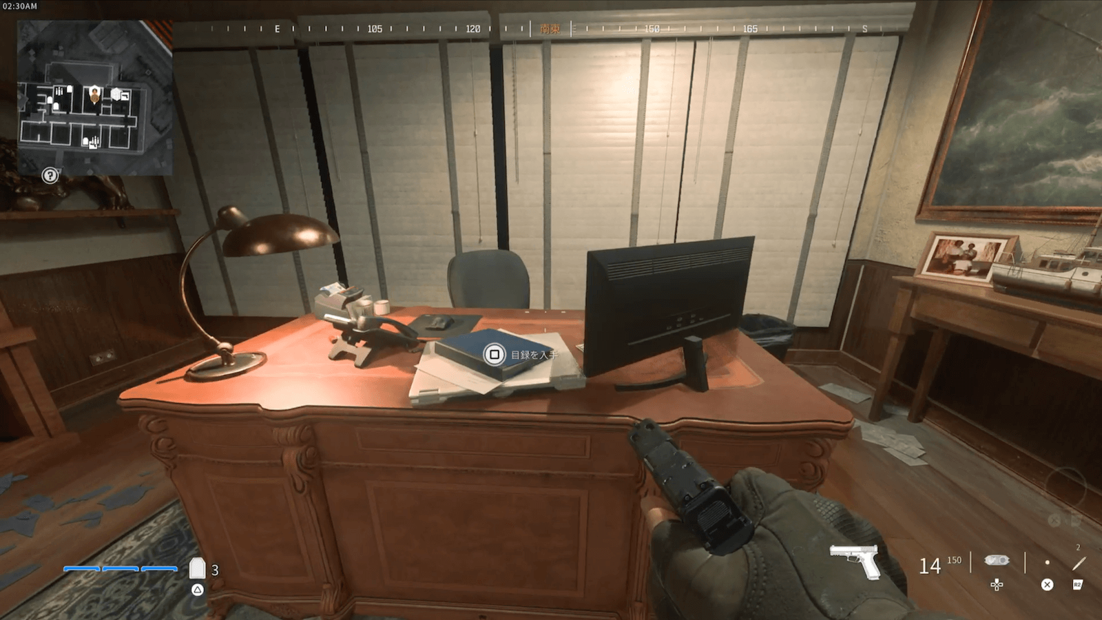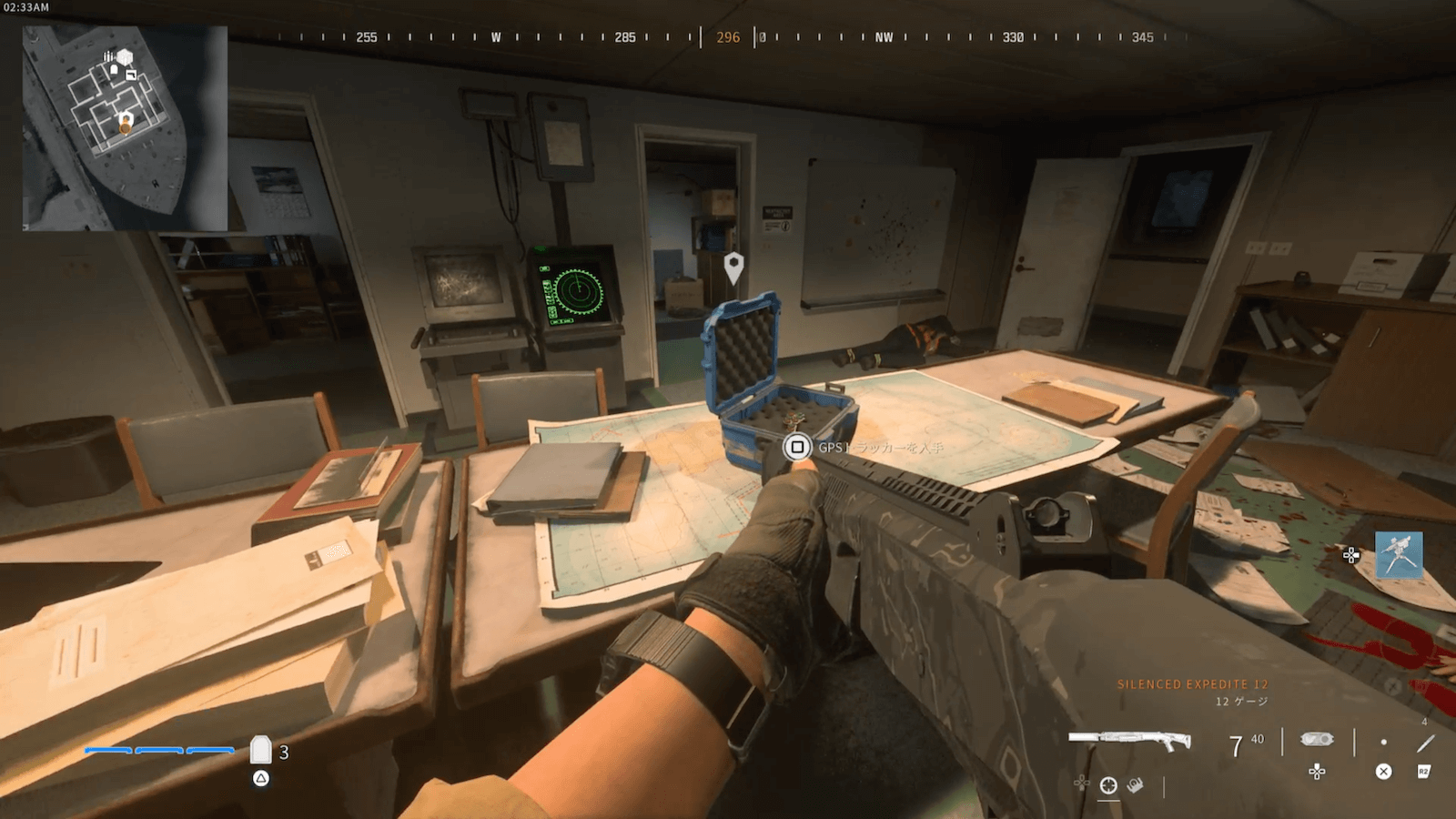 装備を整えたら、マップの各地を巡り、GPS追跡機と目録を回収しよう。どちらにも多く敵が配置されているが、発見状態にならなければ攻撃はしてこない。長距離からこっそり攻撃して安全を確保するか、見つからないルートを探して進もう。