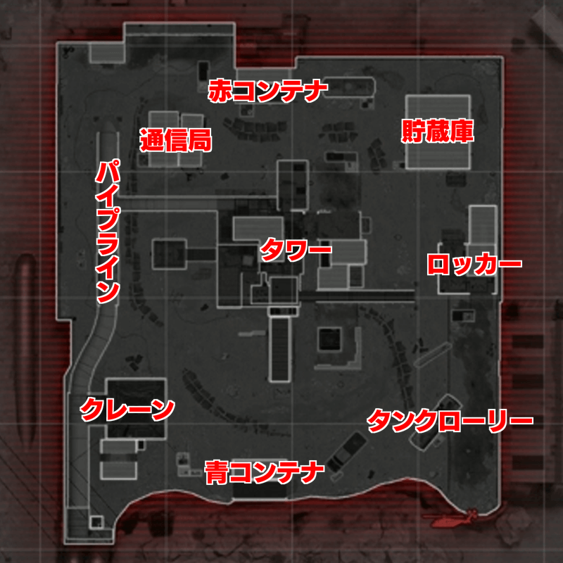 タワーの頂上へは、南側のパイプを登り、ジャンプとよじ登りでたどり着ける。登っている最中に狙われやすいものの、西から東へ突っ切るように一直線でたどり着ける。