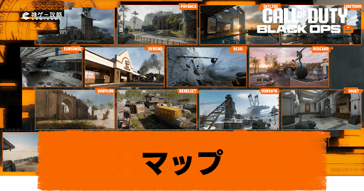 CODBO6では、リリース時点で16種類の新規マップが登場。6v6用のコアマップ12種類と、2v2やフェイスオフ6v6がプレイできる4種類のストライクマップが用意されている。ストライクマップはコアマップよりもコンパクトで、常に混乱が起こるとのこと。