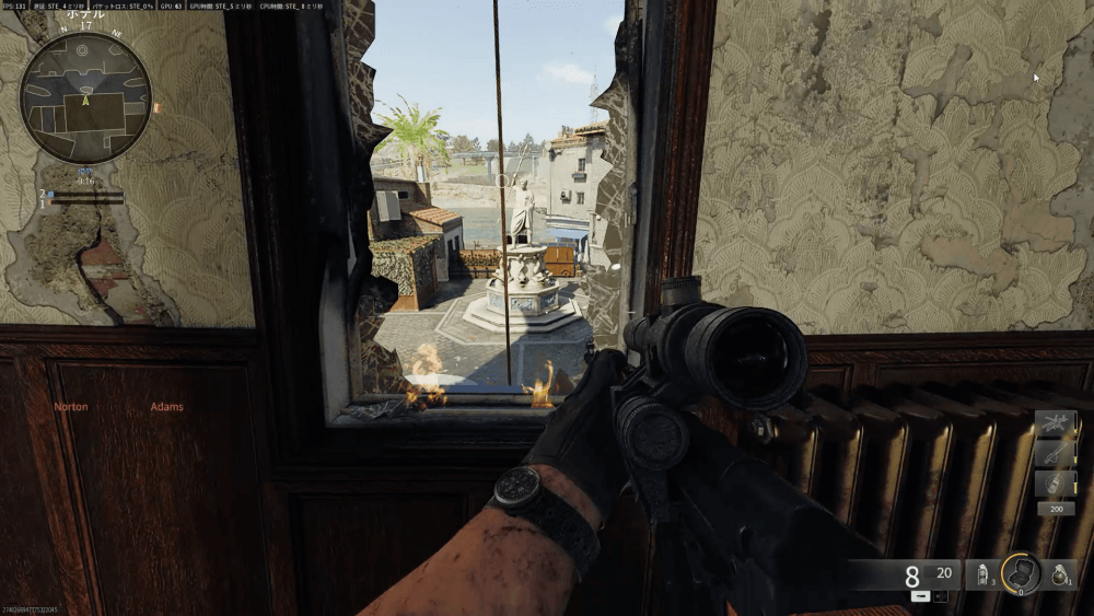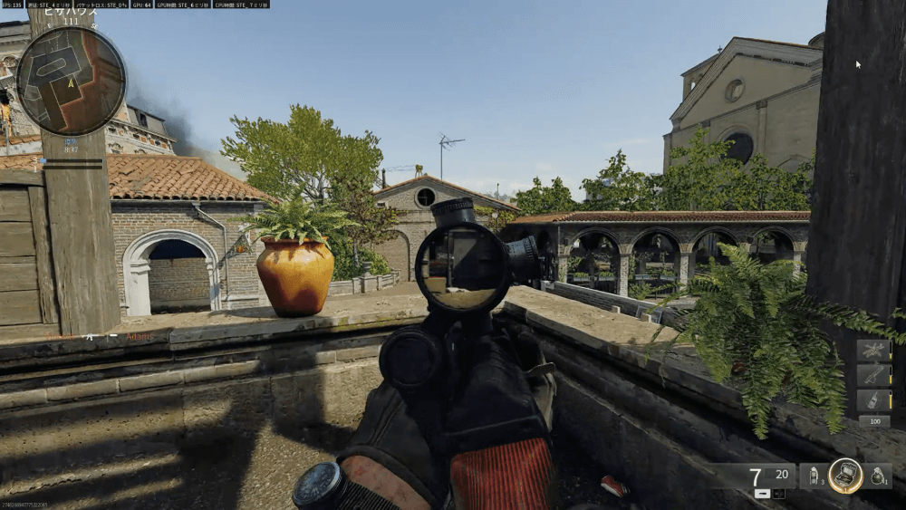 ピザハウスの2階は、高所から切符売り場の出入口を見下ろせる強いポジションだ。市場側からは射線が通らないため、切符売り場から橋を渡ろうとする敵をキルしやすい。