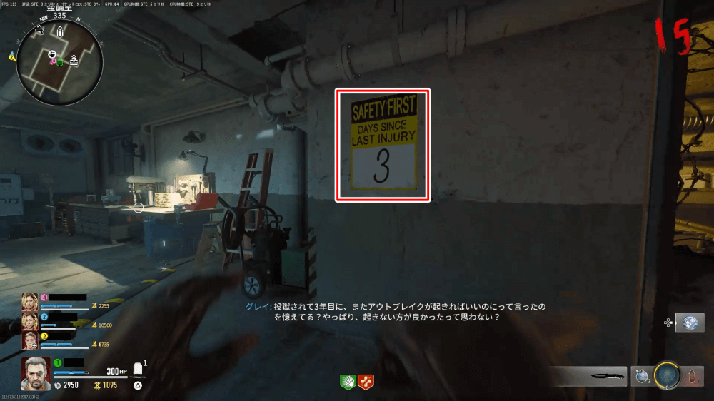 金庫内では、音声ログ「物を言う金」を入手できる。金庫内に滞在できる時間には制限があるため、気になる人は兵舎メニューのゾンビインテルから音声ログを選んで確認しよう。