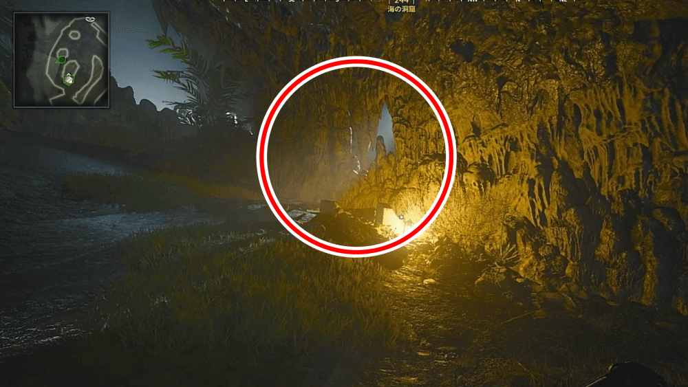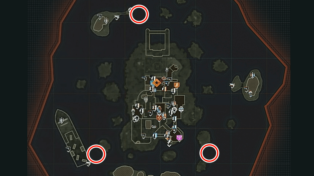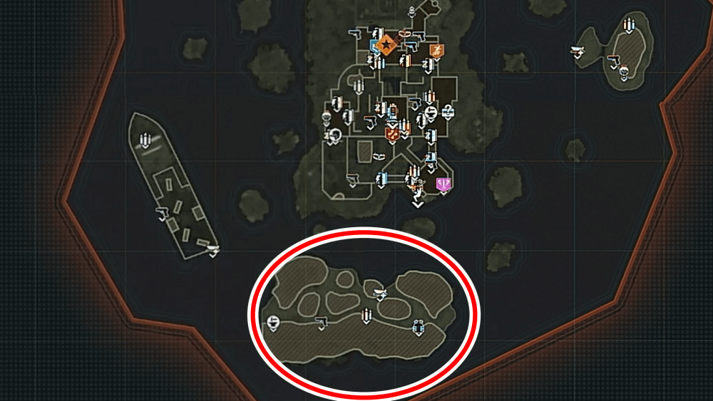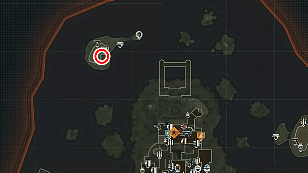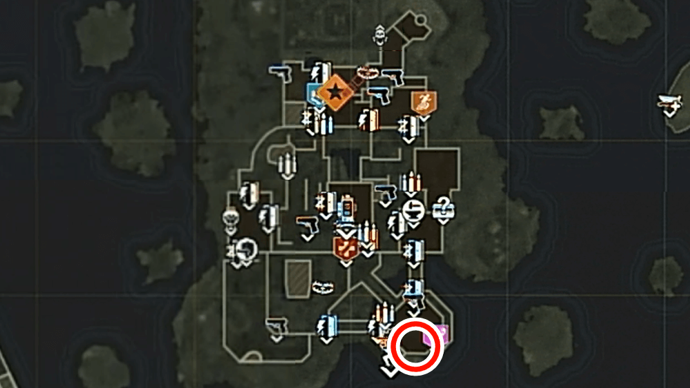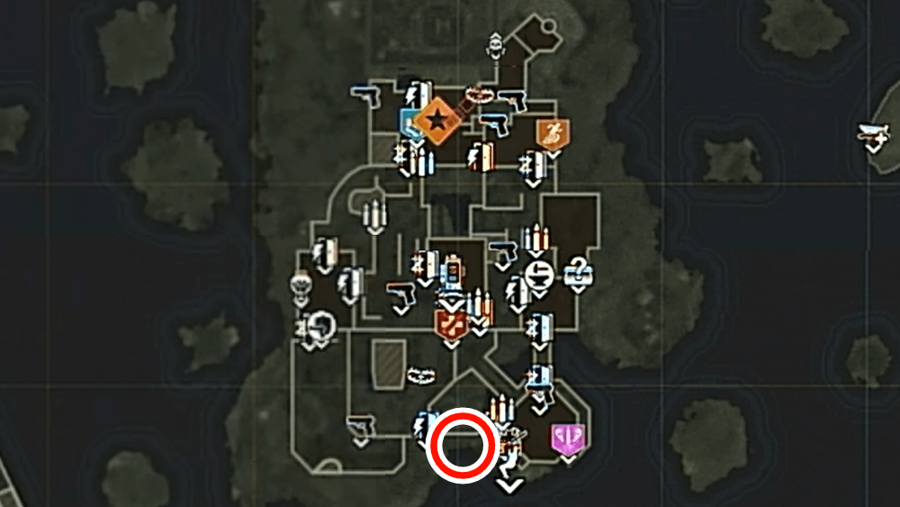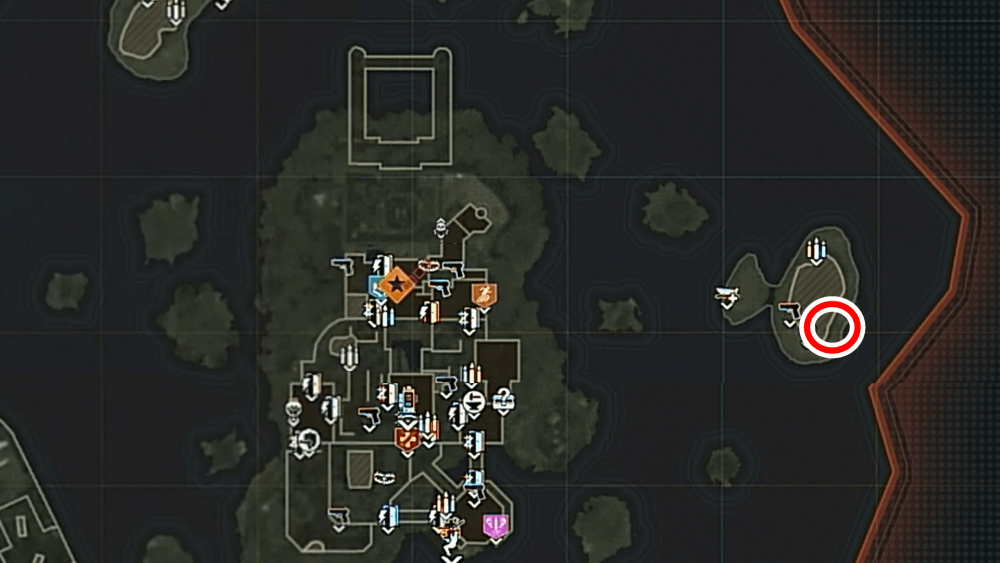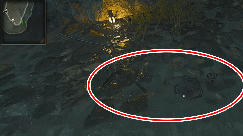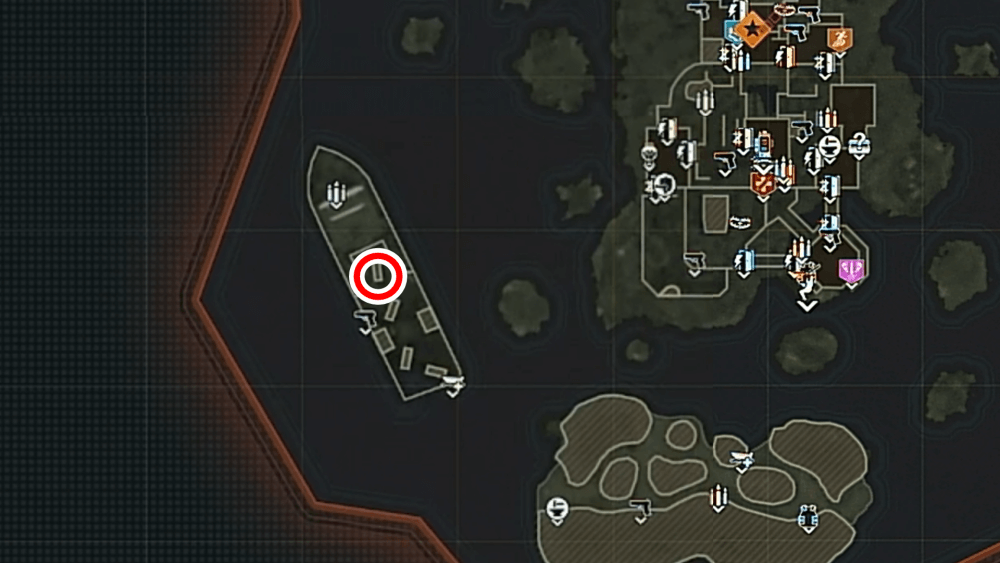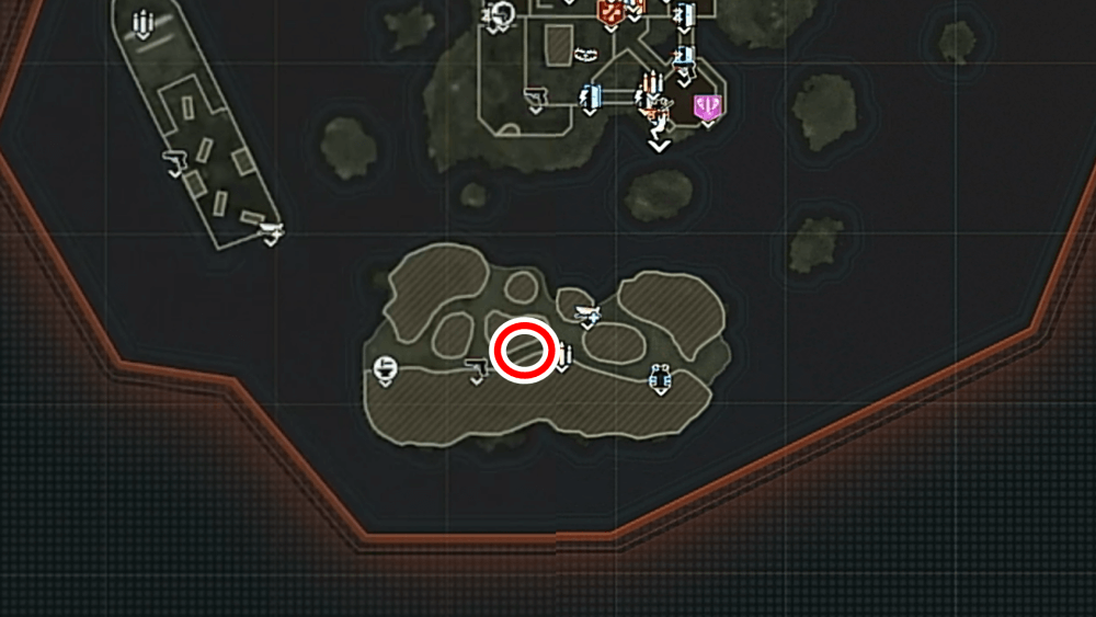 マップ 外観 マップ東側の孤島「キャッスルロック島」で、乗組員の骨にモロトフを投げた後にエリートを撃破する。キャッスルロック島の骨は見つけづらく、体のほとんどが砂に埋もれているため、付近に点いているライトを頼りに探そう。