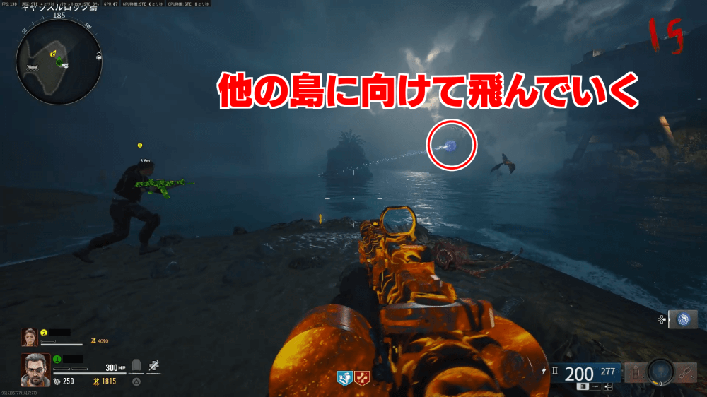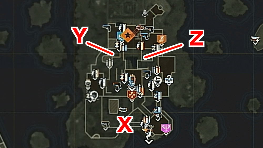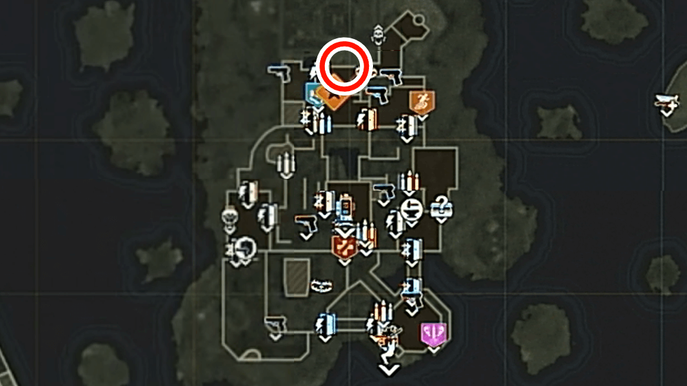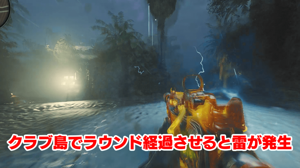 マップ 外観 また地図の「×」印が更新されるため、印を頼りにマップ南の「クラブ島」へ行こう。クラブ島には何も無いが、ゾンビを倒してラウンドを進めていると雷が落ち始める。