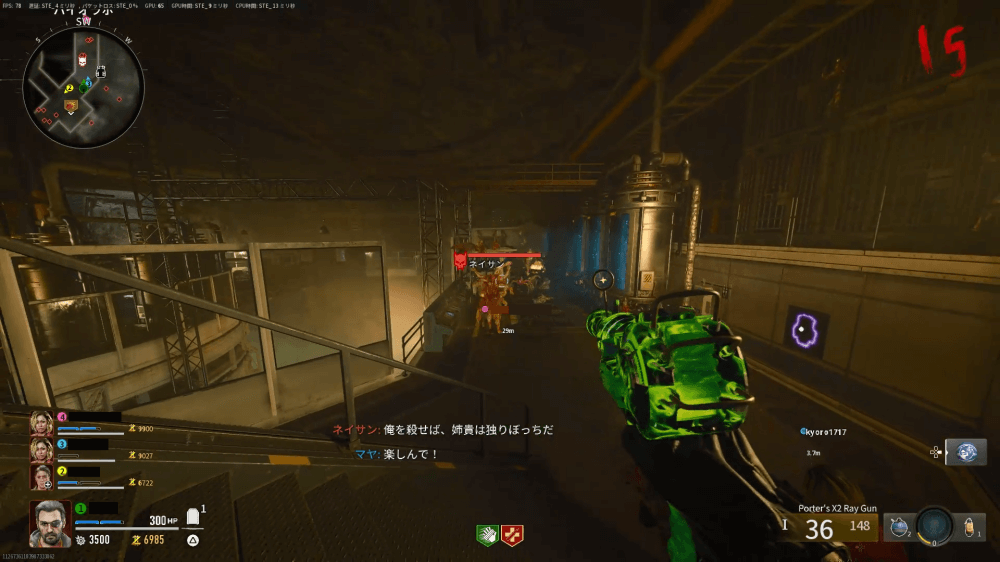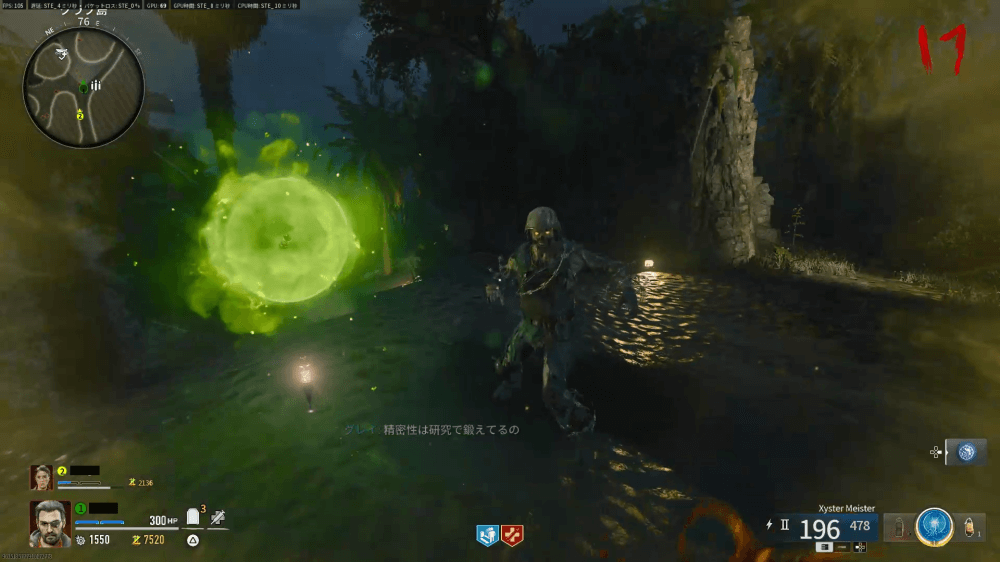エーテルキャニスターをエーテルトラップ付近にセットしたら、北東の雷が落ちている場所にLTGを置こう。LTGを置くと、墓地同様ポータル完全性のゲージと残り時間が表示され、大量のゾンビが襲ってくる。守り切るとエリートゾンビが出現するため、余力を残して処理すると良い。