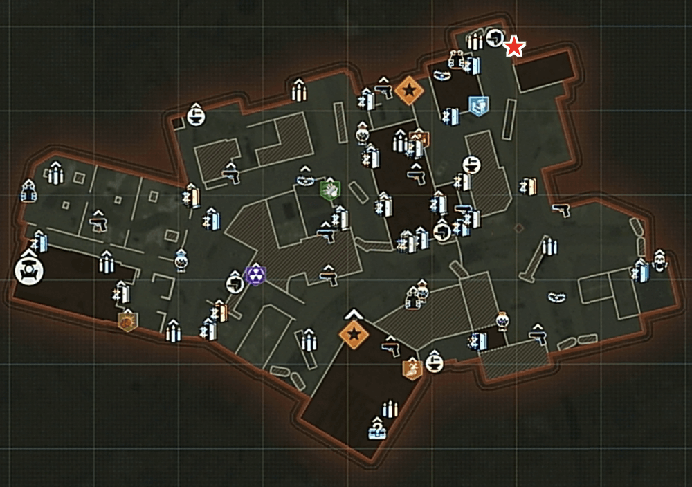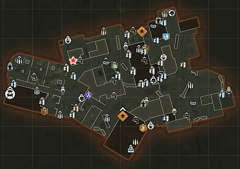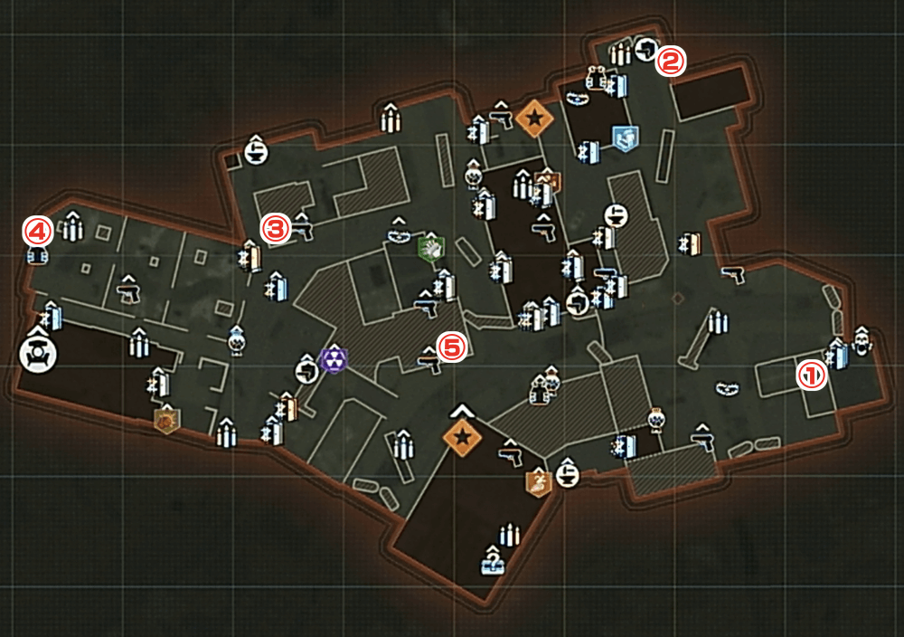 マップ 外観 1 開始地点下の建物2 ラジオハウス隣の店3 AKの家の椅子下4 教会の横最奥の木5 ボウリング場前の家-