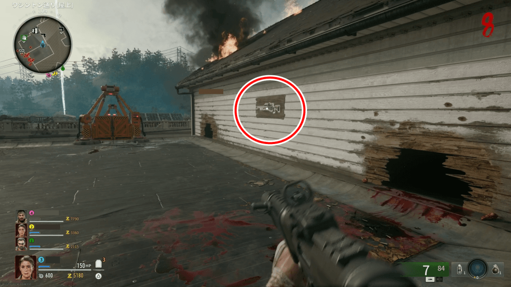マップ 外観 爆発系の武器を準備したら、教会の屋根の上に浮いている頭のような物体を撃とう。爆発系の攻撃を頭に当てると破壊可能で、破壊後には空からゾンビの死体が降ってくる。降ってきたゾンビからは、スコアストリークやエーテルツールなどを複数入手可能だ。